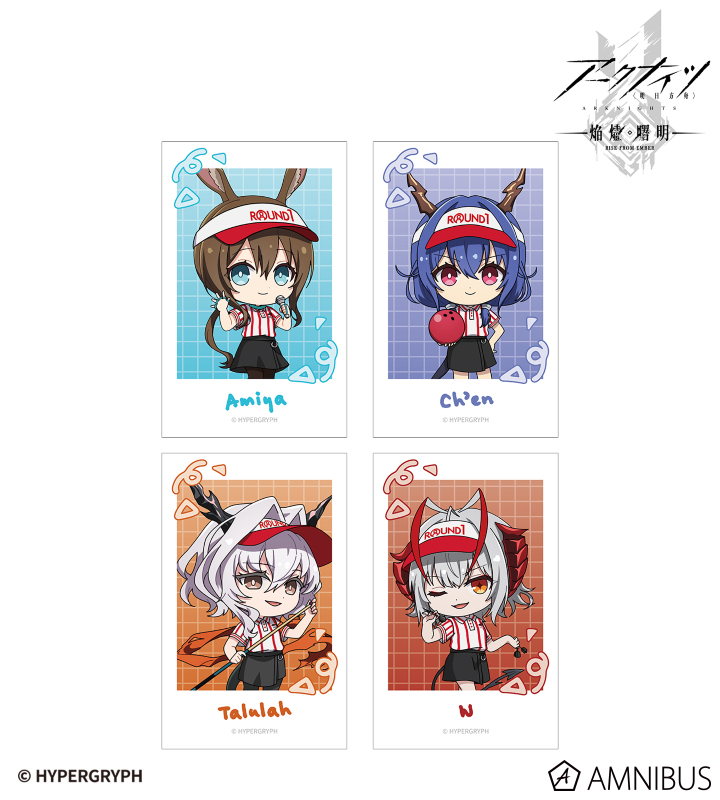 『アークナイツ【焔燼曙明/RISE FROM EMBER】』×「ROUND1」のコラボレーションアイテム「ちびキャラ アクティビティスタッフver. イラストカード4枚セット ver.A」の登場です。