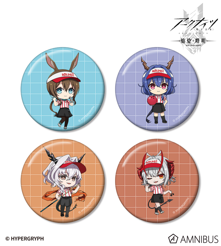 『アークナイツ【焔燼曙明/RISE FROM EMBER】』×「ROUND1」のコラボレーションアイテム「ちびキャラ アクティビティスタッフver. 缶バッジ4個セット ver.A」の登場です。