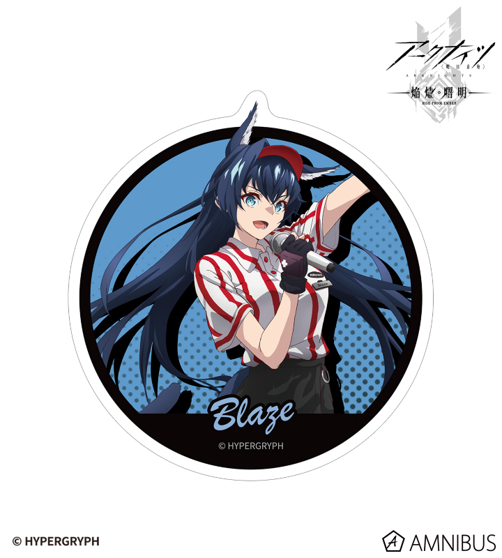 『アークナイツ【焔燼曙明/RISE FROM EMBER】』×「ROUND1」のコラボレーションアイテム「描き下ろし ブレイズ アクティビティスタッフver. ダイカットステッカー」の登場です。