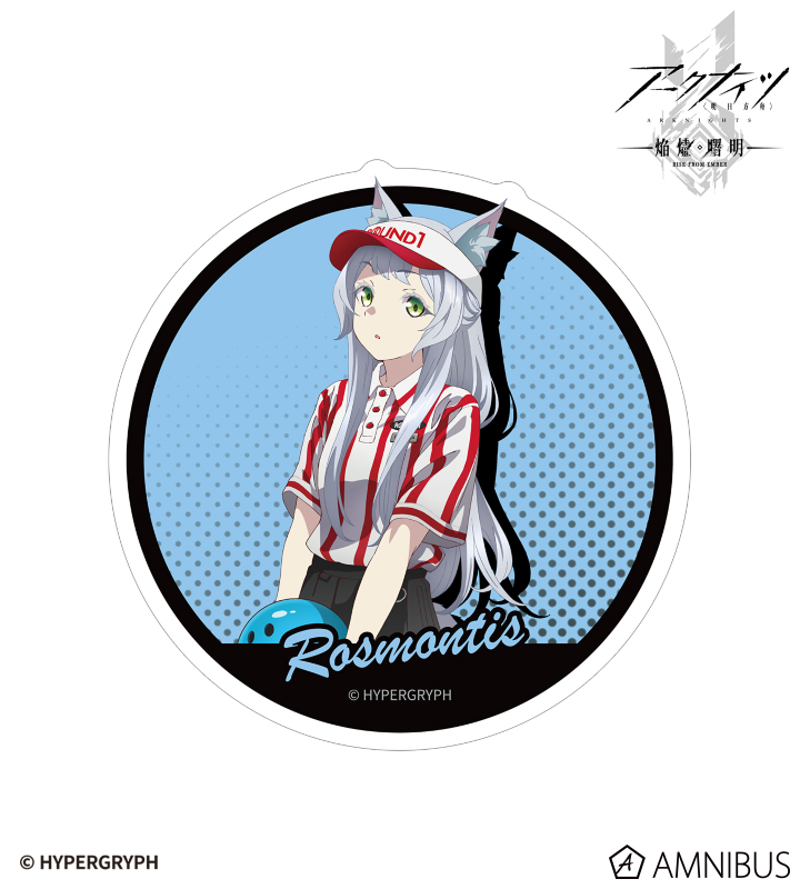 『アークナイツ【焔燼曙明/RISE FROM EMBER】』×「ROUND1」のコラボレーションアイテム「描き下ろし ロスモンティス アクティビティスタッフver. ダイカットステッカー」の登場です。