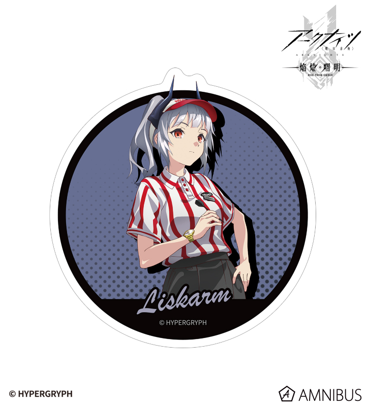『アークナイツ【焔燼曙明/RISE FROM EMBER】』×「ROUND1」のコラボレーションアイテム「描き下ろし リスカム アクティビティスタッフver. ダイカットステッカー」の登場です。