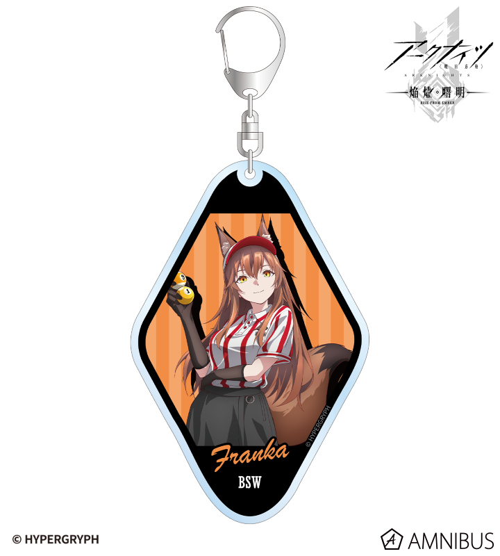 『アークナイツ【焔燼曙明/RISE FROM EMBER】』×「ROUND1」のコラボレーションアイテム「描き下ろし フランカ アクティビティスタッフver. BIGアクリルキーホルダー」の登場です。