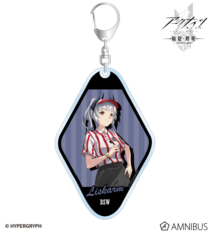 『アークナイツ【焔燼曙明/RISE FROM EMBER】』×「ROUND1」のコラボレーションアイテム「描き下ろし リスカム アクティビティスタッフver. BIGアクリルキーホルダー」の登場です。