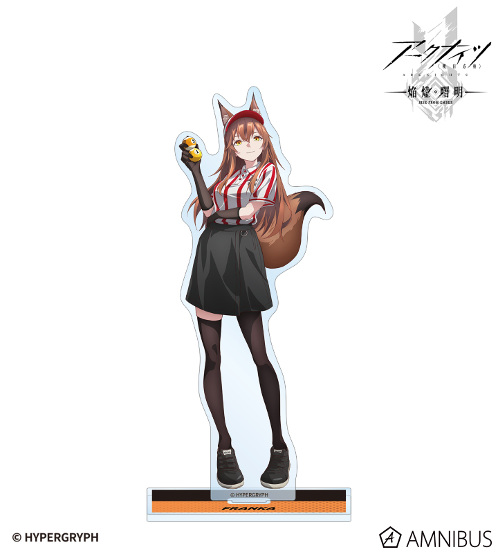 『アークナイツ【焔燼曙明/RISE FROM EMBER】』×「ROUND1」のコラボレーションアイテム「描き下ろし フランカ アクティビティスタッフver. BIGアクリルスタンド」の登場です。