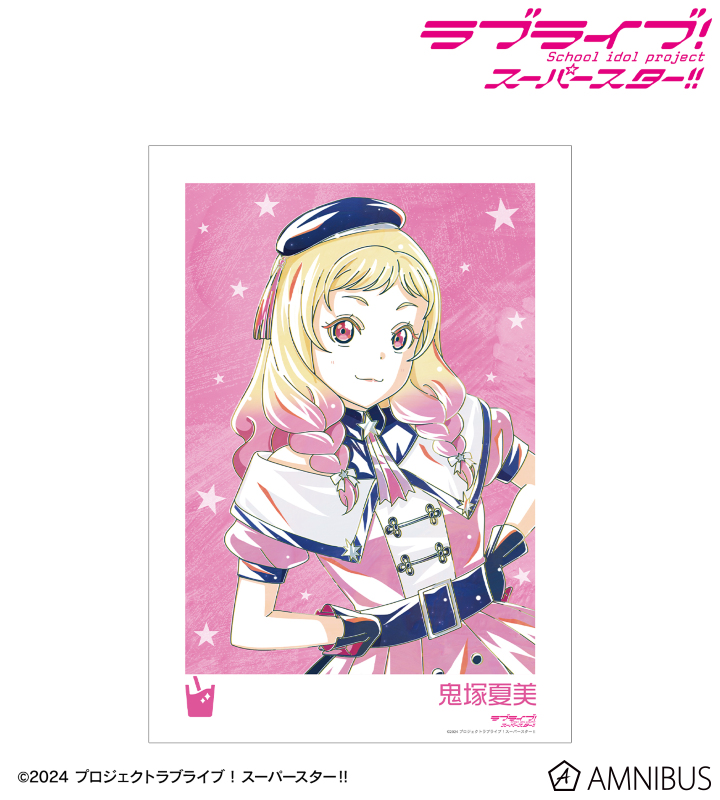 鬼塚夏美のイラストを新たなタッチで魅力的に表現し、メンバーアイコンなどを組み合わせたA3サイズのマット加工されたポスターに仕上げました。