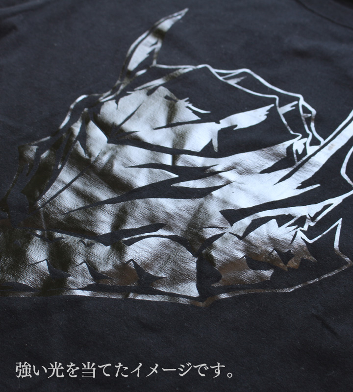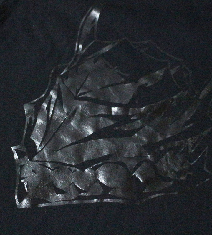 ガッツの黒衣を表現したブラックのボディに、狂戦士の甲冑の兜をブラックの箔プリントで仕上げました。