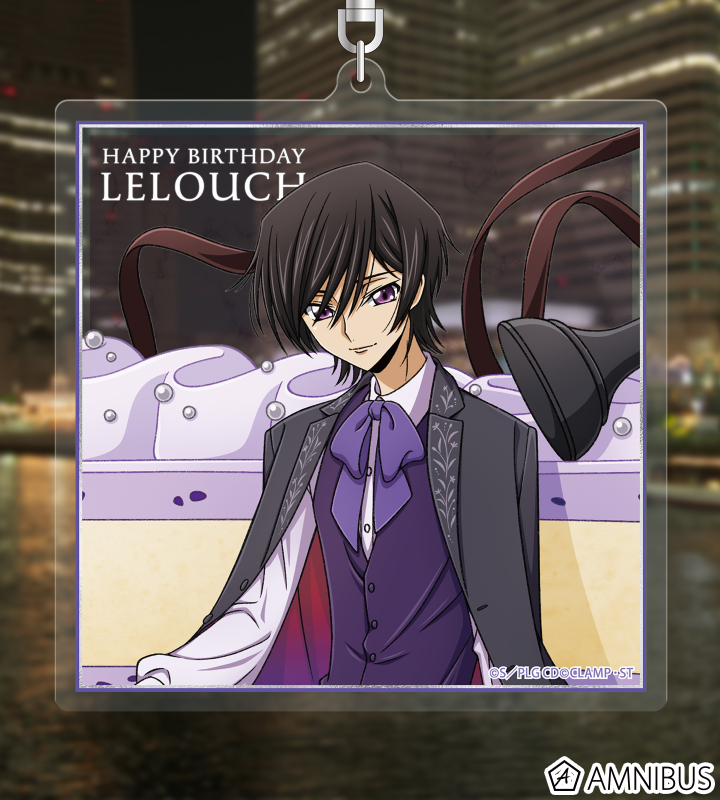 ルルーシュの描き下ろしイラスト、HAPPY BIRTHDAYの文字をBIGなアクリルキーホルダーに仕上げました。